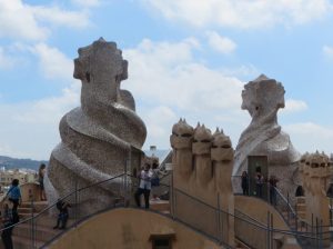 Make sure to get the audio guide. There are lockers available at the beginning of the tour. Your tour will take you to the attic, which has displays. The roof is the highlight here – a fascinating roofscape of hiding places, stair steps and spires. Again, take your time, look for photo opportunities, and look out on the city around you. You can see Sagrada Familia in the distance. If you’re lucky you won’t have to maneuver around field trip groups and bus tour groups, but if so, just be patient. You will also visit one of the apartments where the interior furnishings illustrate life in the early twentieth century.
