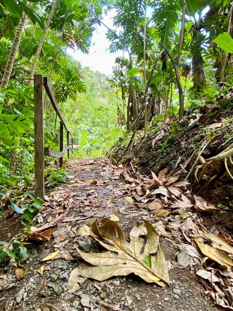 I realized that I only had my flip flops and water shoes, so I chose the water shoes and wondered how that would work on a trail through the jungle. Fortunately, the trail was decent and I wound up grateful for the water shoes as I walked right into the creek whenever the trail crossed it.