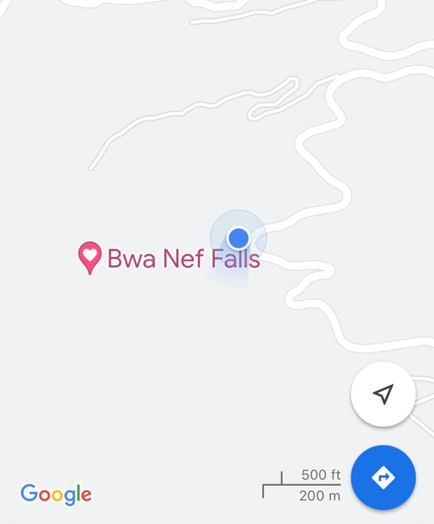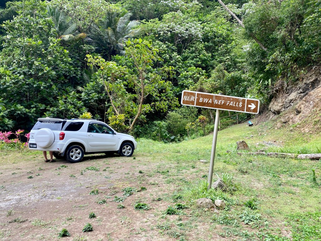 Our destination was the trail to Bwa Nef waterfall. It’s on Google maps, but there was no telling how easy it would be to find and to hike. Fortunately, just to the south of Penville, you’ll find a sign and a convenient area to park along the road.