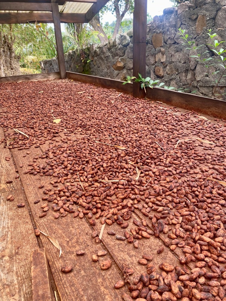 We then saw the sheltered area where the beans are fermented and dried.