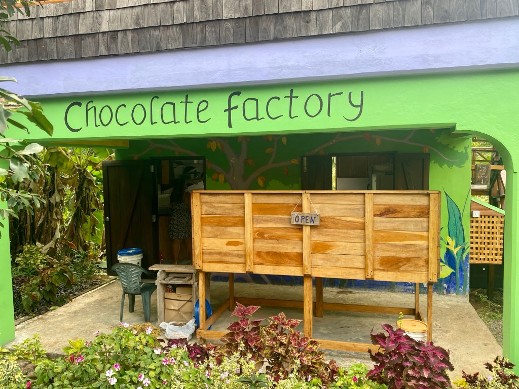 Next stop: Pointe Baptiste Chocolate Factory! We had bought some local chocolate while in Soufriere and were curious to learn more about it. So, we made our way to the “factory”, which is a couple of small buildings and just a few parking spots. As soon as we showed up we joined another couple for a “tour”.
