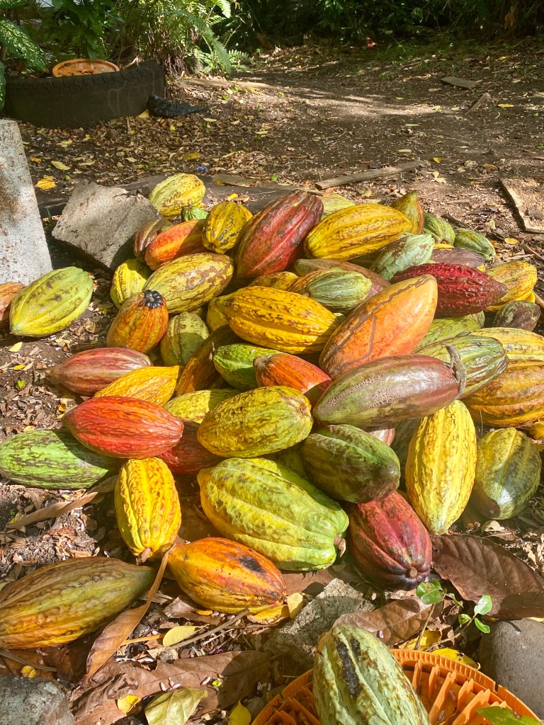 Our first stop on the tour was a cocoa tree and pile of cocoa bean pods.