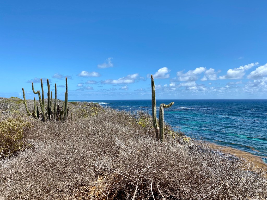 Once at the top, follow the path back toward the ocean for a grand view over the seashore. The cliffs, cacti, and ocean make for a magnificent setting.