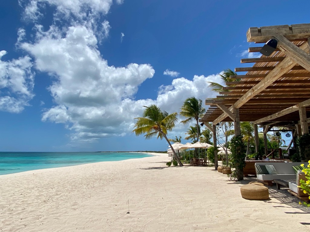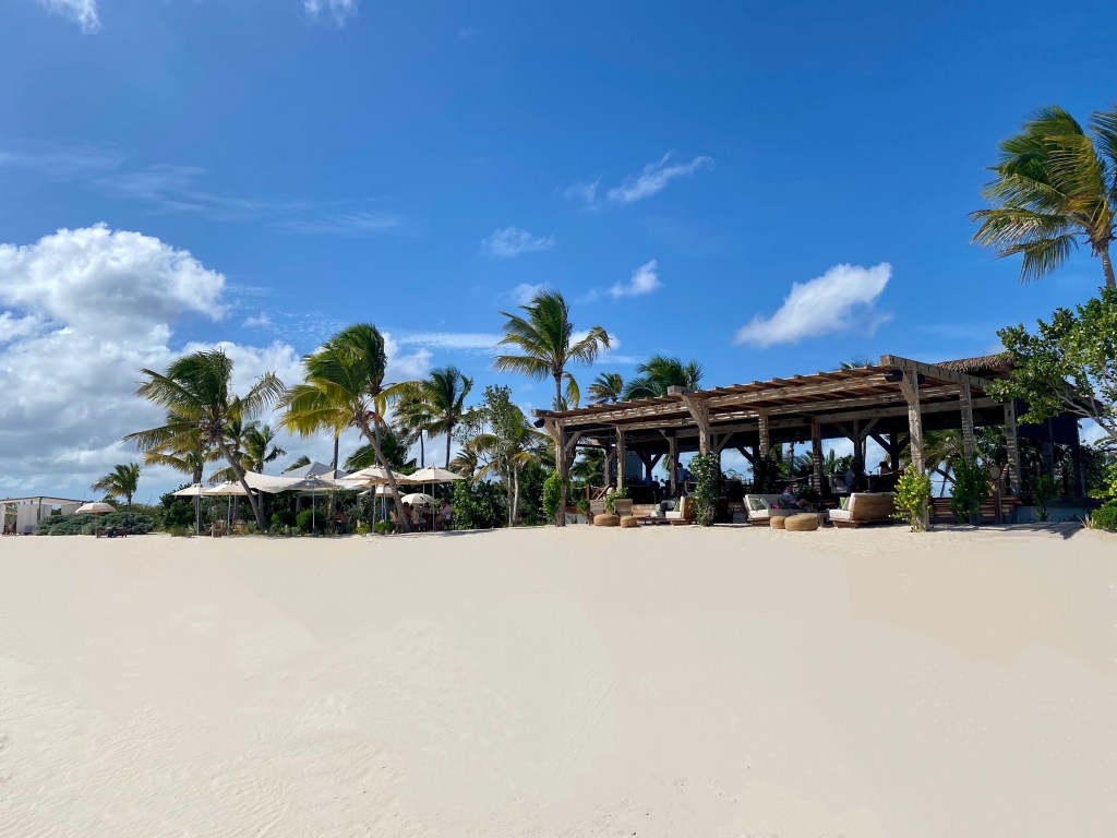 We were immediately greeted and escorted to one of the lounging areas on the sand. We had two sofas and a coffee table. We said “hi” to our friends from the boat who were seated on another set of sofas next to us.
