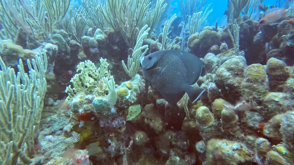 Visibility on this dive was, again, not great. There’s some kind of plant matter or algae in the water. I had run into this on St. Martin a couple weeks earlier and I’m curious about what it is. Looks like cottonwood seed puffs from home – but in the water!