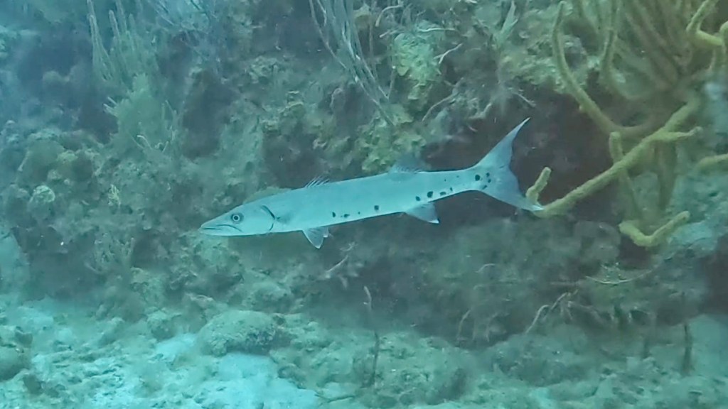 Our second dive was at Carlos Rosario Beach at Culebra island. This is a shallow reef with a sandy area alongside. We saw more angelfish here, along with lots of barracuda, a baby eel, a spotted eel, and several lobsters. Click here to watch my video of the dive. This video is especially long because I included a couple of minutes of an eel that we enjoyed seeing. Also, we had a nice group of people on this dive, so I wanted to give them a longer video and include them, where possible. Some of them were helpful to me, pointing out the eels, and indulgent of my maneuvers trying to get a good shot, and I appreciated it.